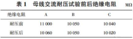 從耐壓試驗(yàn)過(guò)程和表1絕緣電阻數(shù)據(jù)來(lái)看,該35kV 充氣柜母線耐壓試驗(yàn)合格。